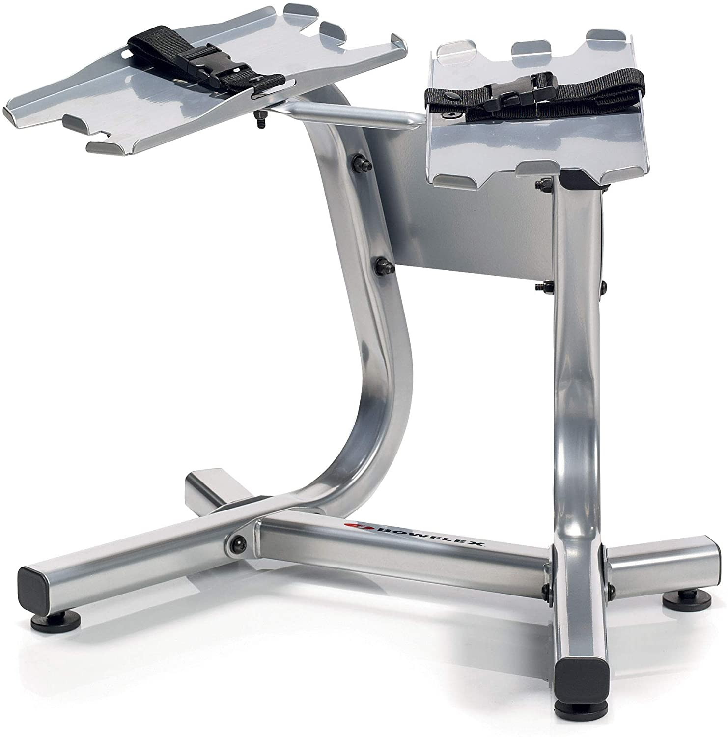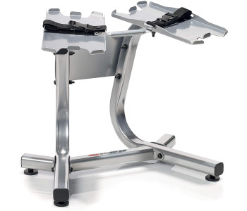 До того ж, під час напруженого тренування брати гантелі з підставки (і укладати їх назад) набагато зручніше, ніж просто з підлоги. Важить Bowflex DB552 7 кг. Його надійна конструкція гарантує довговічність, а гумові ніжки забезпечують таку важливу для виробів подібного рівня стійкість, незалежно від покриття для підлоги.