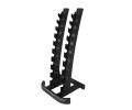 Ергономічний дизайн: Ергономічна висота підставки означає, що вам не потрібно нахилятися над гантелями. Завдяки цьому ви захищаєте поперек, тому що не напружуєте цю частину м'язів. Крім того, підставка розроблена таким чином, щоб займати якнайменше місця.