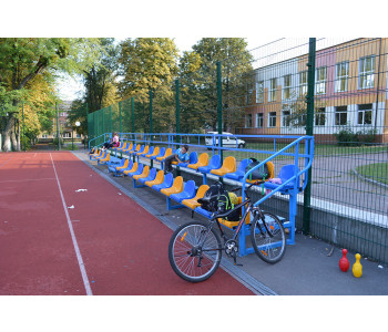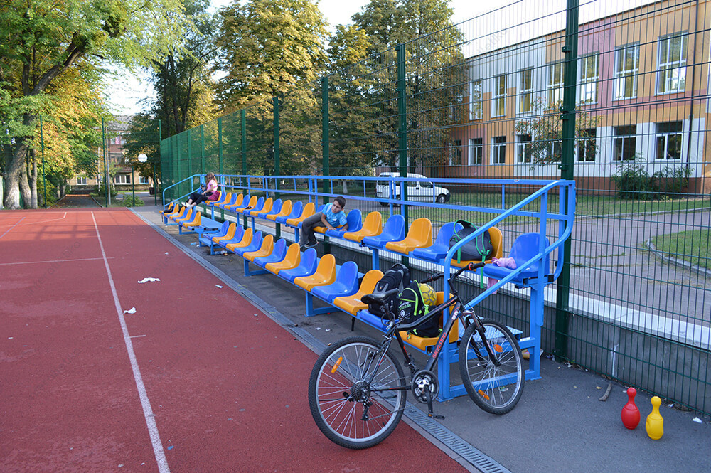 Трибуни виготовлені з металевої профільної прямокутної труби з полімерним покриттям, яке забезпечує високу корозійну стійкість. Модульність конструкції дозволяє максимально скоротити терміни монтажу. Необмежене число модулів в довжину. Можливо виготовлення трибуни з навісом (тент, полікарбонат).