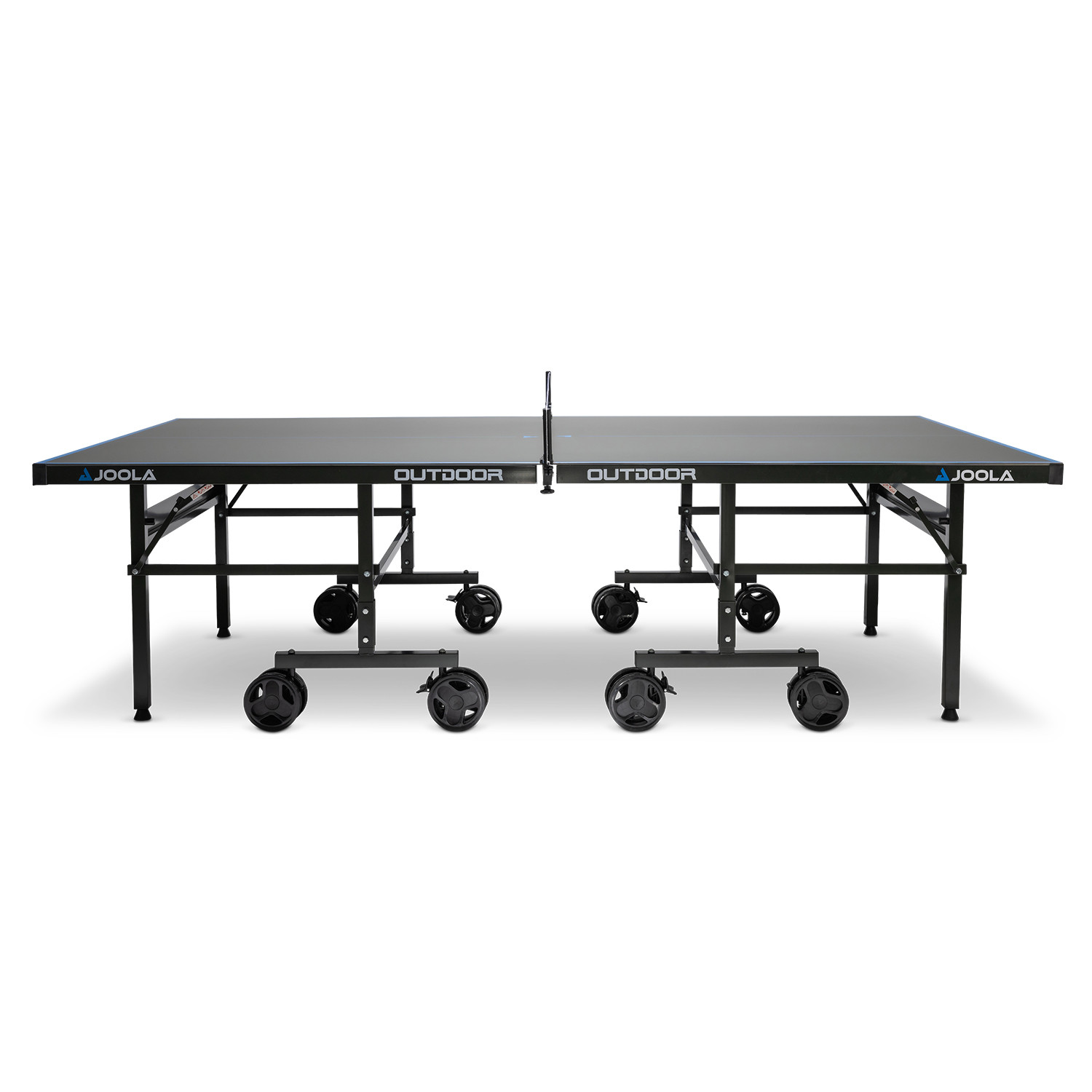 Всепогодний тенісний стіл Joola OUTDOOR J500A – це стіл для настільного тенісу на відкритому повітрі для найвищих вимог! Стійка до атмосферних впливів поверхня столу завтовшки 6 мм із алюмінієвого композитного матеріалу покрита спеціальним способом. Транспортна система з 8 великими колесами, що замикаються, шириною 15 см на кожній половині столу забезпечує чудову мобільність і стійкість навіть на досить нерівних поверхнях. Ніжки столу регулюються по висоті, що дозволяє створити рівну ігрову поверхню. Дві окремі половини столу можна скласти, щоб можна було легко перевести стіл у режим соло гри. У комплект поставки входить сітка для настільного тенісу з практичним затискним механізмом.