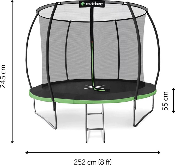 Батут Outtec Premium зі спеціальними вигнутими стійками чудово підійде, як для дітей, так і для дорослих! Подаруйте собі та своїм дітям фантастичні відчуття від стрибків та сальто, та гарантовані яскраві емоції.
