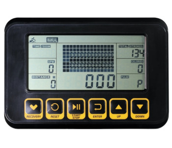 Опір досягається за рахунок руху лопасті тренажера і об'єму води в резервуарі. Резервуар для води з максимальною ємністю 18 літрів з 6-ступінчастою шкалою регулювання забезпечить вам дивовижний тренувальний ефект. Кожен додатковий літр води, налитий в резервуар, відповідає одному рівню навантаження - за шкалою від 12 до 18 літрів. Це означає, що чим більша кількість води використовується, тим більша вага вирушає у протилежний бік під час греблі, і тим більше зусиль потрібно зробити, щоб протистояти опору та продовжувати рух. Інноваційні профільовані лопасті практично безшумно змушують воду рухатися, імітуючи звуки веслування на відкритій воді. Водний тренажер для веслування не потребують підключення до електромережі.