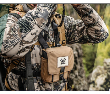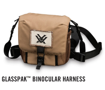 GlassPak™ - Сумка для біноклів із системою наплечних ременів, досить зручна для транспортування та експлуатації бінокля, будучи на природі, в дорозі або на полюванні. Багатоточкова конструкція ременів сумки знімає навантаження з шиї, переносячи її на плечі, дозволяючи таким чином комфортно носити бінокль тривалий час. Фіксатори також кріпляться до бінокля, запобігаючи випадковому падінню бінокля, а задня кишеня на блискавці вміщує додаткові предмети, наприклад мобільний телефон.