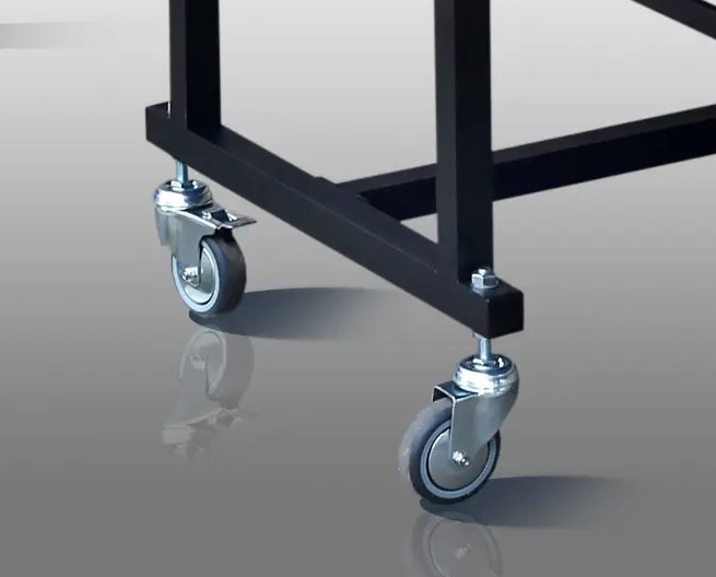 - Колеса обрезинені з фіксацією ходу і діаметром 75 мм - 4 штуки.