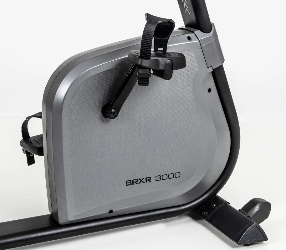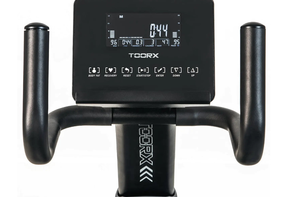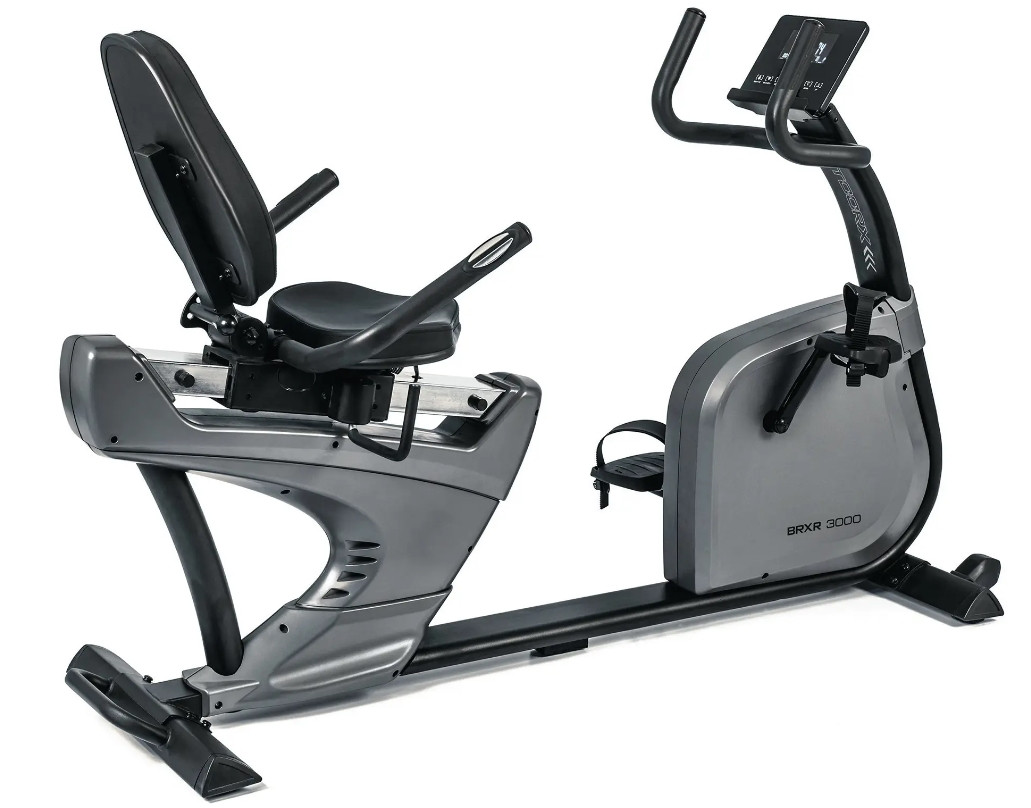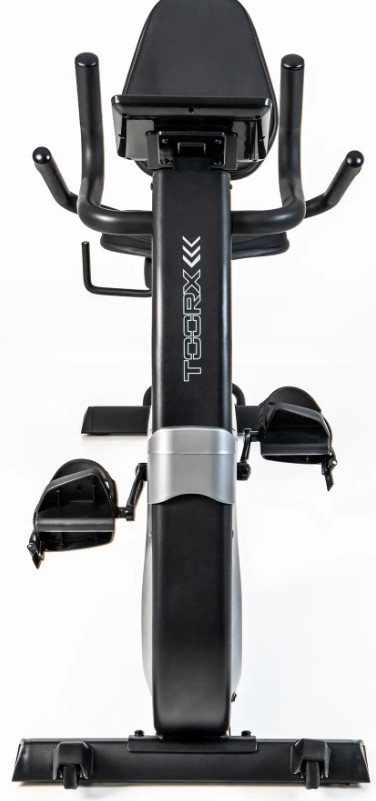 Горизонтальний велотренажер Toorx Recumbent Bike BRXR 3000 (BRX-R3000) із лінійки Light Commercial від італійського виробника Garlando S.p.A. призначений для комфортного кардіотренування як вдома, так і в невеликих фітнес клубах. Велоергометр із індукційною магнітною системою гальмування має 32 рівня навантаження, що регулюються за допомогою сучасного комп'ютера. 16-кілограмовий маховик створює відмінну плавність ходу, знижуючи навантаження на суглоби та мінімізуючи ризик отримання травми в процесі занять. Велотренажер розрахований на вагу до 160 кг і має зручну спинку з можливістю регулювання кута нахилу для більшого комфорту. Вбудований приймач для бездротового датчика вимірювання пульсу буде доречним під час тренування по одній із чотирьох пульсозалежних програм. Консоль тренажера має тримач для смартфона / планшета та підтримує Bluetooth для інтеграції з популярними програмами iConsole+ Training і Kinomap, які перетворять монотонне тренування в захоплюючий процес. Сидіння велотренажера регулюється в горизонтальній площині для індивідуального налаштування, а транспортувальні ролики в передній частині тренажера дозволяють переміщати його по кімнаті за допомогою зручної ручки.