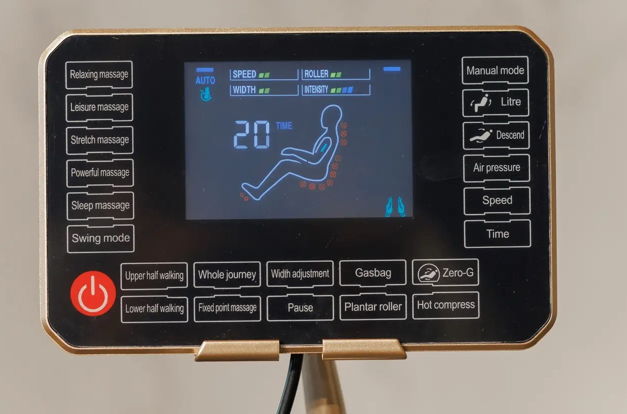 6-МАСАЖНИХ ТЕХНІК (Розминання, Постукування, Шіатсу, Поплескування, Точковий масаж, Розтяжка хребта). Можливість керувати техніками в ручному режимі, також самостійно налаштовувати інтенсивність роботи механізмів.