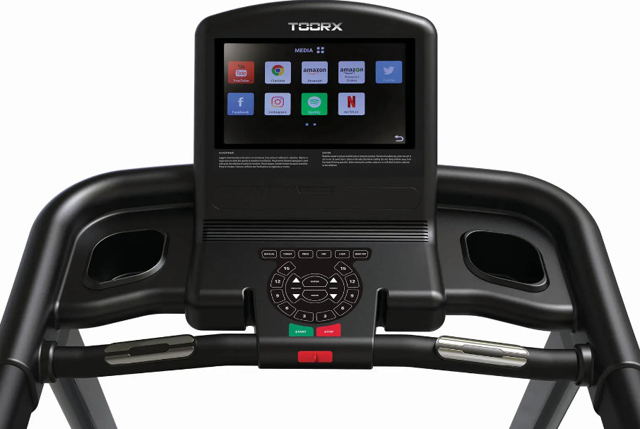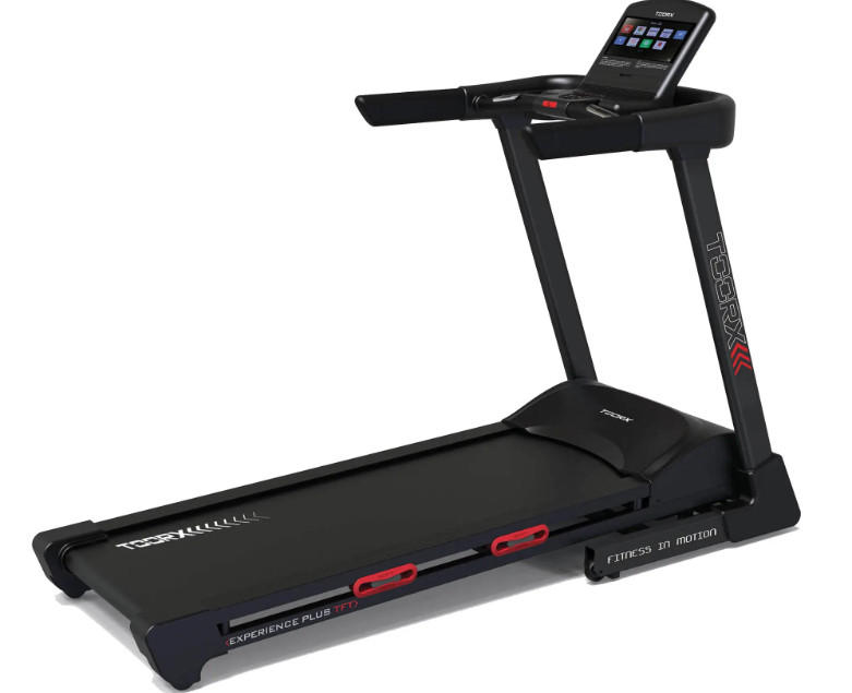 Бігова доріжка Toorx Treadmill Experience Plus TFT (EXPERIENCE-PLUS-TFT) від італійського виробника Garlando S.p.A. призначена для спортивної ходьби та бігу в домашніх умовах. Модель розрахована на максимальну вагу користувача до 130 кг і має потужний двигун постійного струму 3,5 к.с., який дозволяє розвивати швидкість від 1 до 22 км/год. Бігове полотно розміром 151 х 50 см із можливістю регулювання нахилу від 0 до 15% як кнопками на панелі керування, так і за допомогою кнопок, розташованих на поручнях. Система амортизації Soft Tech знижує навантаження на суглоби та мінімізує ризик отримання травми в процесі занять. Консоль тренажера з 10,1” TFT HD сенсорним екраном оснащена різноманітними програмами як для підготовлених користувачів, так і для початківців. Wi-Fi під'єднання та попередньо встановлені додатки YouTube, Chrome, Amazon Shopping, Amazon Prime Video, Twitter, Facebook, Instagram, Spotify, Netflix зроблять процес тренування різноманітним і цікавим. Бездротовий датчик вимірювання пульсу буде доречним під час тренування по одній із чотирьох пульсозалежних програм. Бігова доріжка Toorx Treadmill Experience Plus (EXPERIENCE-PLUS) має складану конструкцію та транспортувальні ролики, завдяки чому її легко переміщати по квартирі.