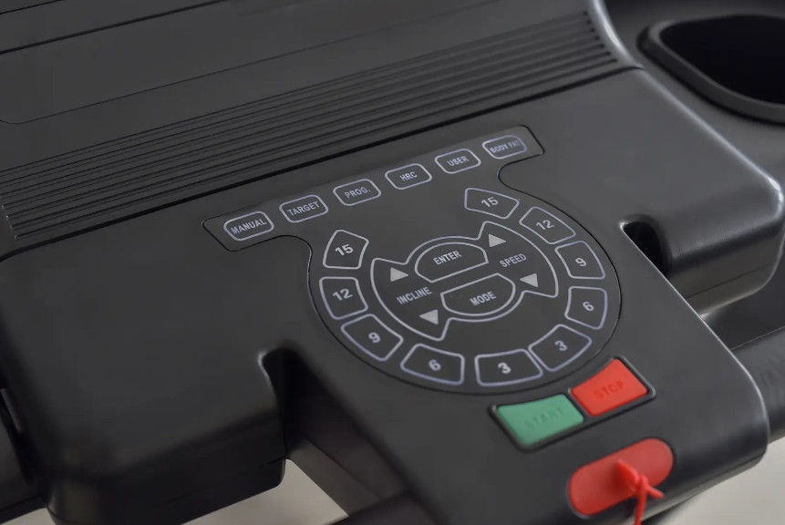 - - Кнопки регулювання швидкістю/нахилом також розташовані на поручнях.