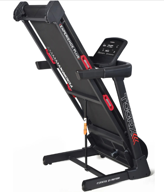 Бігова доріжка Toorx Treadmill Experience Plus (EXPERIENCE-PLUS) від італійського виробника Garlando S.p.A. призначена для спортивної ходьби та бігу в домашніх умовах. Модель розрахована на максимальну вагу користувача до 130 кг і має потужний двигун постійного струму 3,5 к.с., який дозволяє розвивати швидкість від 1 до 22 км/год. Бігове полотно розміром 151 х 50 см із можливістю регулювання нахилу від 0 до 15% як кнопками на панелі керування, так і за допомогою кнопок, розташованих на поручнях. Система амортизації Soft Tech знижує навантаження на суглоби та мінімізує ризик отримання травми в процесі занять. Консоль тренажера з LED-дисплеєм оснащена різноманітними програмами як для підготовлених користувачів, так і для початківців. Бездротовий датчик вимірювання пульсу буде доречним під час тренування по одній із чотирьох пульсозалежних програм. Бігова доріжка Toorx Treadmill Experience Plus (EXPERIENCE-PLUS) має складану конструкцію та транспортувальні ролики, завдяки чому її легко переміщати по квартирі.