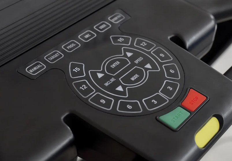 - - Кнопки регулювання швидкістю/нахилом також розташовані на поручнях.