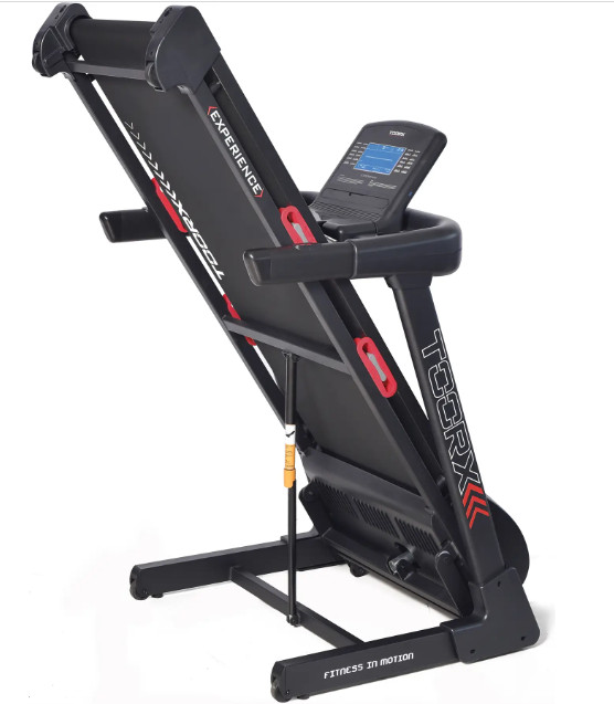 Бігова доріжка Toorx Experience (EXPERIENCE) від італійського виробника Garlando S.p.A. призначена для спортивної ходьби та бігу в домашніх умовах. Модель розрахована на максимальну вагу користувача до 130 кг і має потужний двигун постійного струму 3,25 к.с., який дозволяє розвивати швидкість від 1 до 20 км/год. Бігове полотно розміром 146 х 50 см із можливістю регулювання нахилу від 0 до 15% як кнопками на панелі керування, так і за допомогою кнопок, розташованих на поручнях. Система амортизації Soft Tech знижує навантаження на суглоби та мінімізує ризик отримання травми в процесі занять. Консоль тренажера з LCD-дисплеєм із блакитним підсвічуванням оснащена різноманітними програмами як для підготовлених користувачів, так і для початківців. Бездротовий датчик вимірювання пульсу буде доречним під час тренування по одній із чотирьох пульсозалежних програм. Бігова доріжка Toorx Treadmill Experience (EXPERIENCE) має складану конструкцію та транспортувальні ролики, завдяки чому її легко переміщати по квартирі.