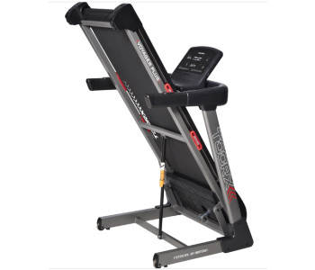 Бігова доріжка Toorx Voyager (VOYAGER) від італійського виробника Garlando S.p.A. призначена для спортивної ходьби та бігу в домашніх умовах. Модель розрахована на максимальну вагу користувача до 120 кг і має потужний двигун постійного струму 2,75 к.с., який дозволяє розвивати швидкість від 1 до 18 км/год. Бігове полотно розміром 141 х 48 см із можливістю регулювання нахилу від 0 до 15% як кнопками на панелі керування, так і за допомогою кнопок, розташованих на поручнях. Система амортизації Soft Tech знижує навантаження на суглоби та мінімізує ризик отримання травми в процесі занять. Консоль тренажера з LCD-дисплеєм із блакитним підсвічуванням оснащена різноманітними програмами як для підготовлених користувачів, так і для початківців. Вбудовані сенсорні датчики вимірювання пульсу будуть доречними під час тренування по одній із чотирьох пульсозалежних програм. Бігова доріжка Toorx Treadmill Voyager (VOYAGER) має складану конструкцію та транспортувальні ролики, завдяки чому її легко переміщати по квартирі.