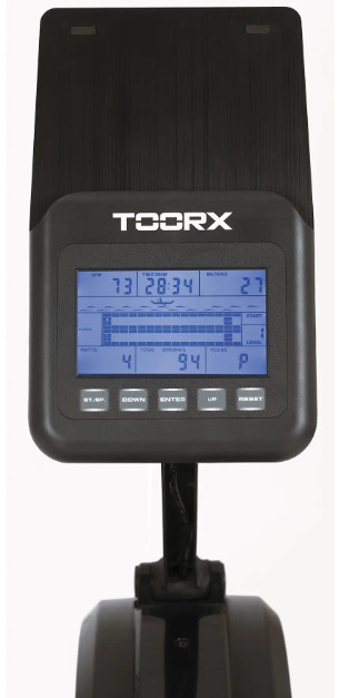Гребний тренажер Toorx Rower RWX 300 (RWX-300) від італійського виробника Garlando S.p.A. призначений для комплексного кардіотренування в домашніх умовах. Тренажер має 16 рівнів навантаження, що регулюються за допомогою сучасного комп'ютера. 5-кілограмовий маховик завдяки магнітній системі гальмування забезпечує оптимальну амплітуду рухів, а повітряна система опору імітує відчуття веслування на воді. Гребний тренажер розрахований на вагу до 120 кг, а його сидіння на роликах ковзає по алюмінієвій напрямній, гарантуючи необхідний комфорт навіть за тривалих вправ. Вбудований приймач для бездротового датчика вимірювання пульсу буде доречним під час тренування для контролю частоти серцевих скорочень. Складана конструкція тренажера заощаджує місце та дозволяє розмістити його навіть на мінімальній площі, яка потрібна для занять спортом. Консоль тренажера має тримач для смартфона / планшета і підтримує Bluetooth для інтеграції з популярним додатком Kinomap, який перетворить монотонне тренування в захоплюючий процес.