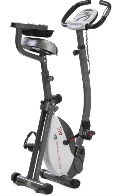 Велотренажер Toorx Upright Bike BRX Compact Multifit (BRX-COMPACT-MFIT) від італійського виробника Garlando S.p.A. призначений для повноцінного кардіотренування в домашніх умовах. Тренажер має 8-рівневе ручне регулювання навантаження, а також простий у користуванні комп'ютер. 6-кілограмовий маховик створює достатню плавність ходу, знижуючи навантаження на суглоби та мінімізуючи ризик отримання травми в процесі занять. Велотренажер розрахований на вагу до 100 кг і підійде для користувачів зростом до 1,9 м. Вбудовані сенсорні датчики вимірювання пульсу будуть доречними під час тренування для контролю частоти серцевих скорочень. Сидіння велотренажера з відкидною спинкою регулюється по висоті, кермо має регулювання як кута нахилу, так і по вертикалі для індивідуального налаштування. Транспортувальні ролики в передній частині тренажера дозволяють переміщати його по кімнаті.