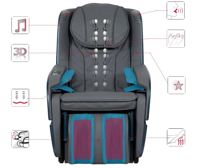 Безліч привабливих функцій крісла включають стереодинаміки, які дозволяють повністю відпочити тілом і душею. Стереодинаміки пропонують унікальні мелодії найвищої якості.