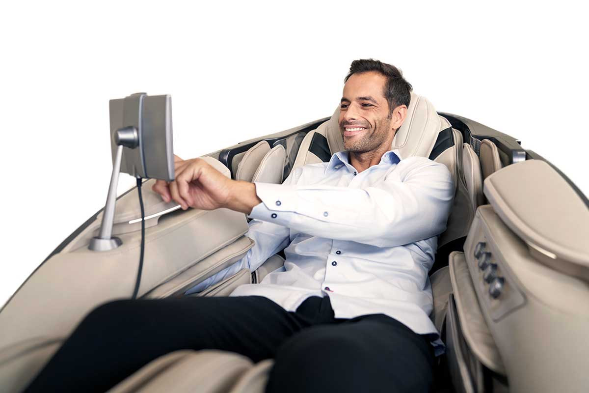Залишіть позаду стрес і напругу повсякденного життя та оздоровлюйтеся чи насолоджуйтеся неперевершеним масажем із нашим інноваційним кріслом Skyliner III.