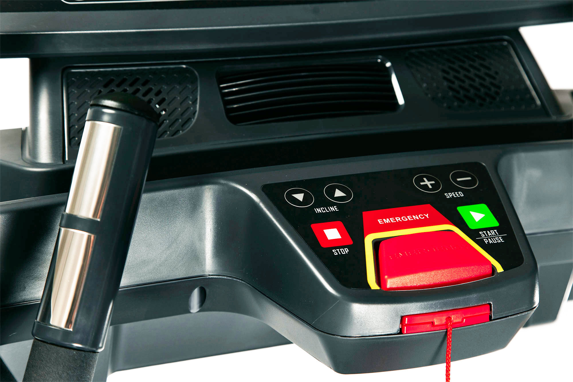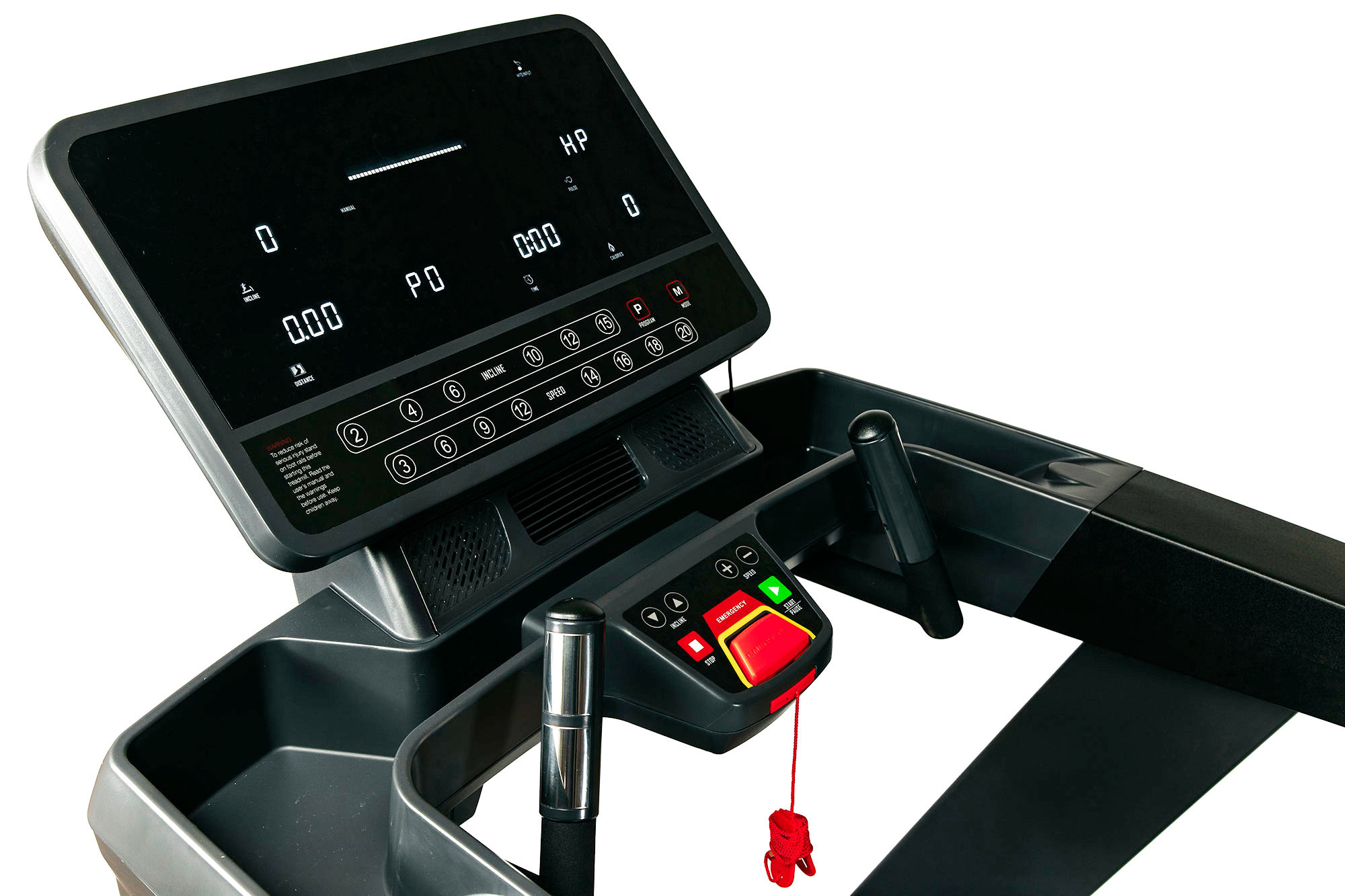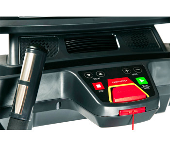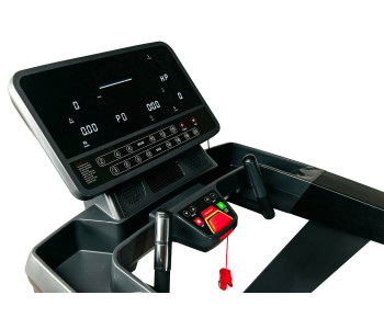 Комфортна панель з яскравим LED дисплеєм поєднана кнопкою екстреної зупинки, а також кнопками швидкого доступу, які дають змогу в один дотик змінювати швидкість і кут нахилу бігового полотна.