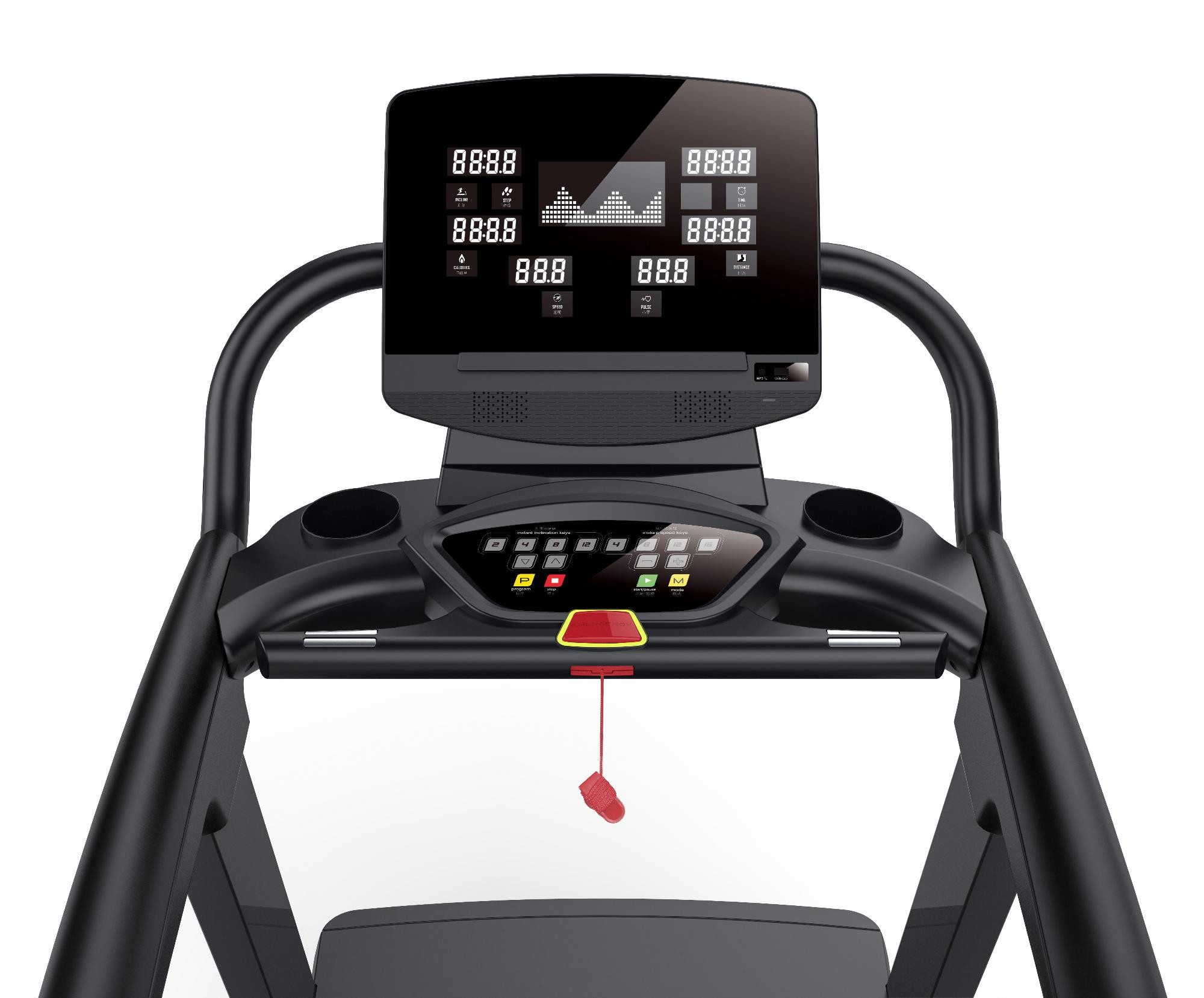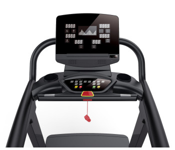 Комфортна панель з яскравим LED дисплеєм поєднана кнопкою екстреної зупинки, а також кнопками швидкого доступу, які дають змогу в один дотик міняти швидкість і кут нахилу бігового полотна.
