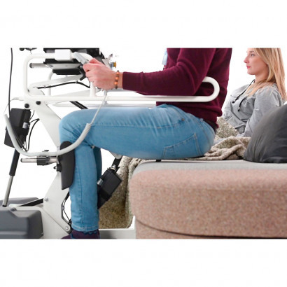 - - Користувач піднімається в положення стоячи за допомогою електродвигуна, який керується пультом.