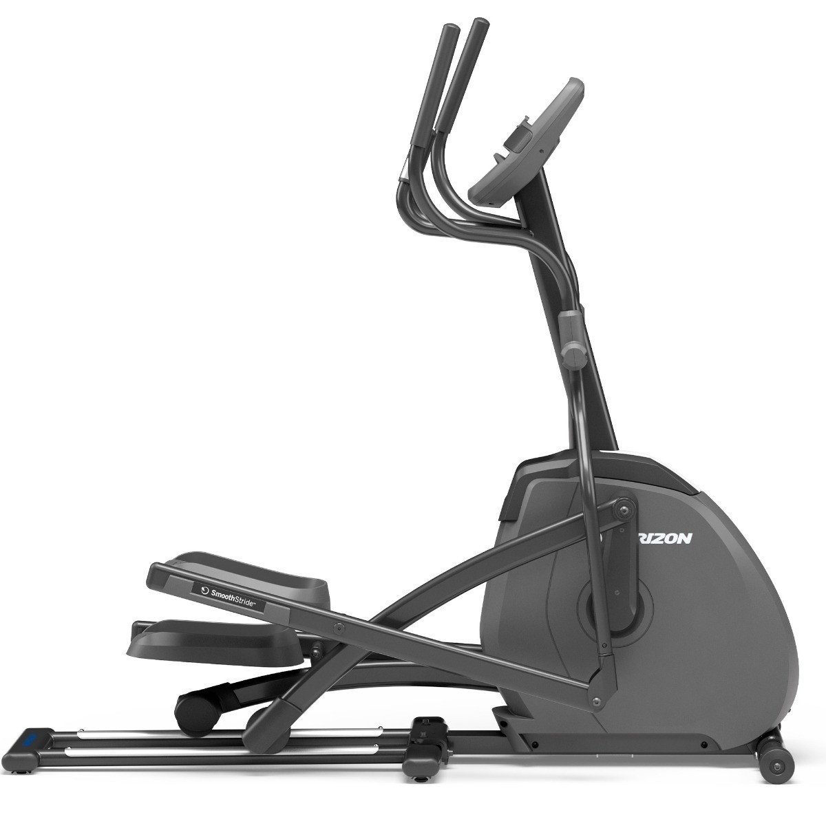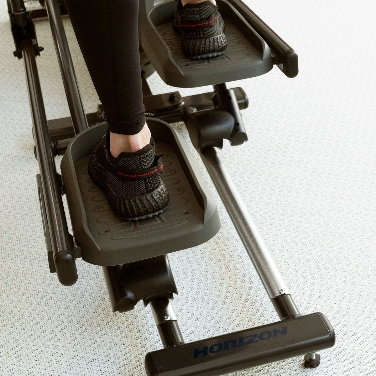 Домашній еліпсоїд Horizon EX59 – продукт відомого концерну Johnson Health Tech (США), відомого своїми інноваційними розробками у сфері фітнесу. Це модель з електромагнітним принципом створення навантаження та переднім розташуванням маховика, вага якого становить 7 кг. Рама кардіотренажера зварена з використанням плоскошовної технології із сталевого трубного профілю. Метал покритий двома шарами порошкової фарби, завданої передовим електростатичним методом. Конструкція тренажера досить міцна, щоб витримати вагу користувача до 136 кг. При цьому сам домашній орбітрек важить лише 66 кг. Він має високу стійкість до перекидання і спирається на 6 точок. Ніжки цієї моделі оснащені компенсаторами, тому нерівності статі не страшні.