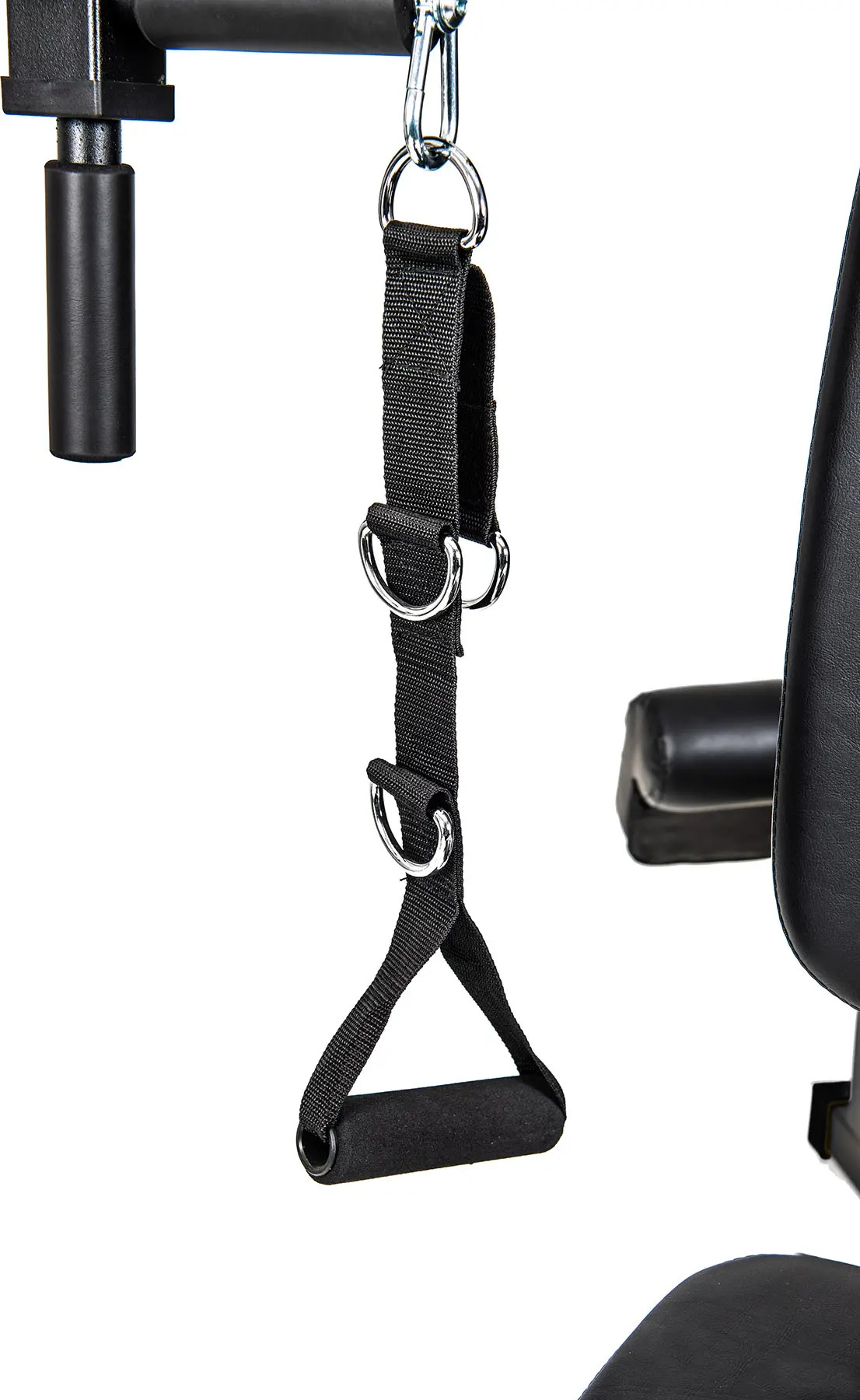 - - В комплекті широка ручка для тяги, пряма ручка для тяги, дві регульовані ручки для тяги, лямка для ноги.