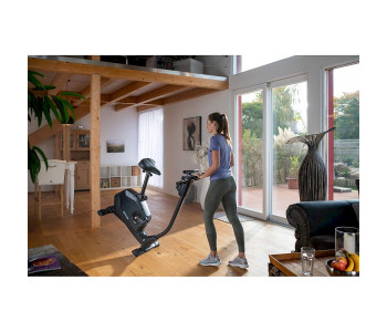 Тиха і плавна робота велосипеда дозволяє тренуватися вдома. Велосипед не займає багато місця. Транспортні колеса дозволяють легко переміщати велосипед після тренування.