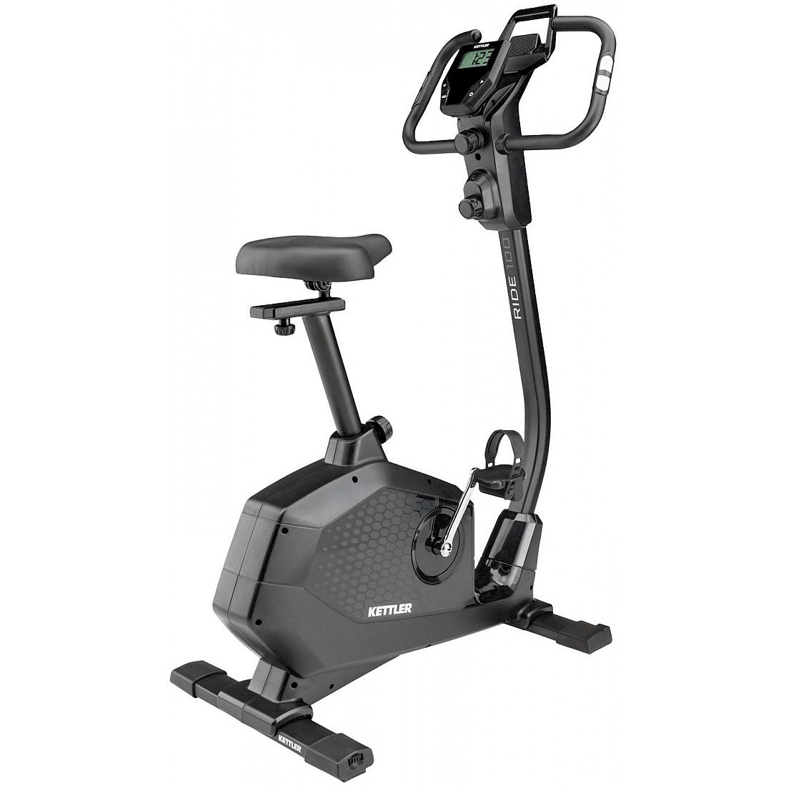 KETTLER RIDE 100 - це магнітний велосипед з маховиком 6 кг і 8 рівнями опору. Рівень опору регулюється вручну за допомогою ручки, розташованої під кермом. Регулювання від 1 до 8 дозволяє налаштувати рівень навчання відповідно до ваших індивідуальних потреб.
