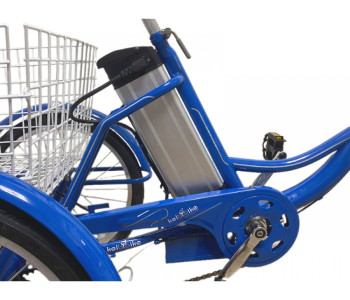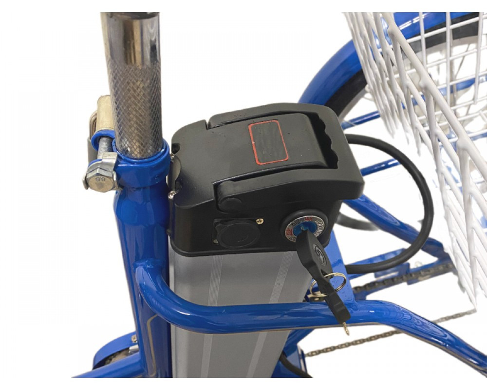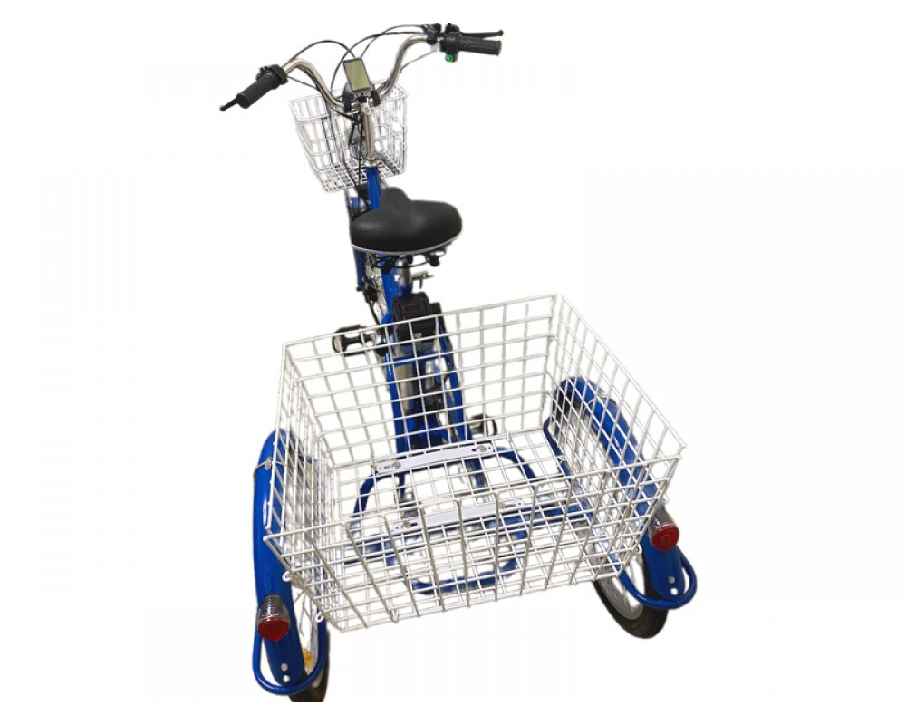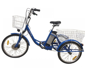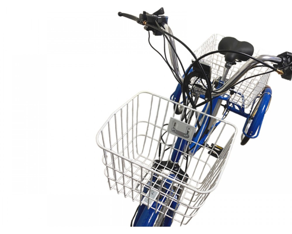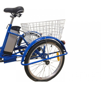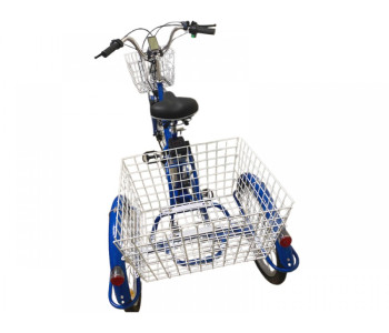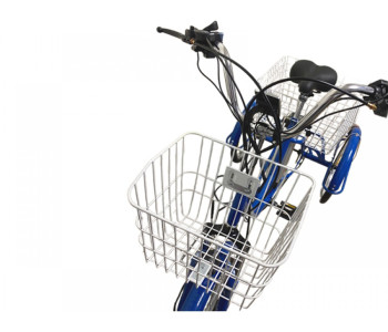 Триколісний електровелосипед (трицикл), забезпечений електродвигуном потужністю 500W на передній привід. Електродвигун розганяє трицикл до 35 км/год та підтримує її протягом усієї роботи. Такої швидкості достатньо для переміщення у міській чи сільській місцевості. Літій-іонний акумулятор 48V 12Ah забезпечить пробіг до 50 км. При змішаному режимі пробіг може становити до 60 км. При цьому заряджання батареї може здійснюватися від звичайної електромережі 220В протягом 4-6 годин. Щоб привести його в рух, можна скористатися звичайними педалями або натиснути ручку газу. У порівнянні з бензиновим транспортом трицикл набагато екологічніший і економічніший. Трицикл здатний стати незамінним «робочим конем» для тих, кому необхідно перевозити вантажі на невеликі відстані. Трицикл має два кошики. Передня має розміри 34*25*23 см, ззаду 56*38*30. У задньому кошику можна перевозити вантажі масою до 40 кг, а передній додатковий кошик зручний для сумок. Крім того, цей трицикл дуже стійкий. Довжина трицикла у зібраному вигляді 180 см, ширина – 80 см по заднім колесам.