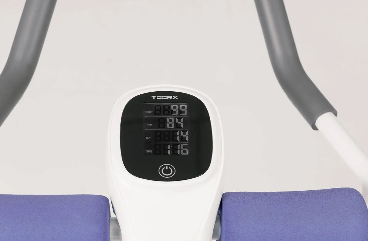 - - Консоль із LCD-дисплеєм відображає час тренування, витрачені калорії, кількість рухів, кількість рухів за хвилину.