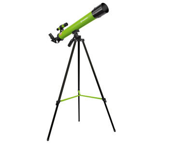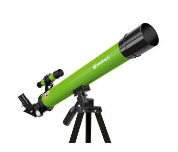 Телескоп з ручним керуванням Bresser Junior 50/600 AZ оснащений достатньою оптикою для спостереження кратерів на Місяці діаметром 8 км, зірок слабкого світіння (до 10,5 зіркових величин), Сатурна, Урана і Нептуна у вигляді зірок, полярних шапок Марса. Навіть деякі туманності, що знаходяться на відстані до 1500 світлових років, стануть доступні оку дитини у вигляді світлих концентрованих плям за наявності хороших погодних умов. З рівним успіхом телескоп може бути використаний для спостереження міських пам'яток з великих відстаней. Телескоп комплектується азимутальним монтуванням, яке простіше в управлінні і менше за вагою, в порівнянні з екваторіальним, що не мало важливо для дитини. З її допомогою можна спостерігати як за наземними, так і за небесними об'єктами. Діагональне дзеркало, що входить до комплекту, змінює хід променів на 90° і дозволяє зручно спостерігати об'єкти, що знаходяться на значній висоті над горизонтом.