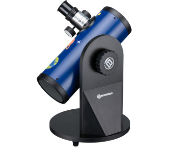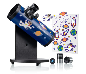Телескоп Bresser Junior 76/300 Smart (8843205) – чудовий подарунок, здатний захопити вашу дитину та зацікавити астрономією, як наукою. Ця модель компактного рефлектора на монтуванні Добсона для дітей від 8-ми років. Телескоп поставляється повністю зібраним та готовим до використання прямо з коробки. Ви можете просто поставити його на стіл, надіти один з двох окулярів, і приступити до дослідження космосу. Телескоп має дзеркало діаметром 76 мм і фокусну відстань 300 мм збираючи в 117 разів більше світла, ніж неозброєне око людини. Маючи збільшення до 50х, без складнощів можливо переглядати яскраві зображення улюблених об’єктів нічного неба які легко знайти завдяки надійному вбудованому компасу. Телескоп чудово підходить для спостереження за Місяцем, в комплекті постачається спеціальний місячний фільтр, котрий захищає ваші очі, коли ви спостерігаєте захоплюючі пейзажі та кратери з неймовірним яскравим контрастом. Також в комплекті два окуляра, із збільшенням відповідно 15x і 50x. Веселі наліпки від BRESSER FAMILY для створення власного дизайну телескопа.