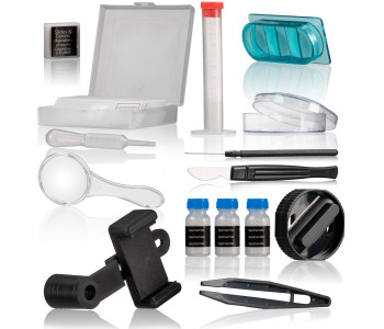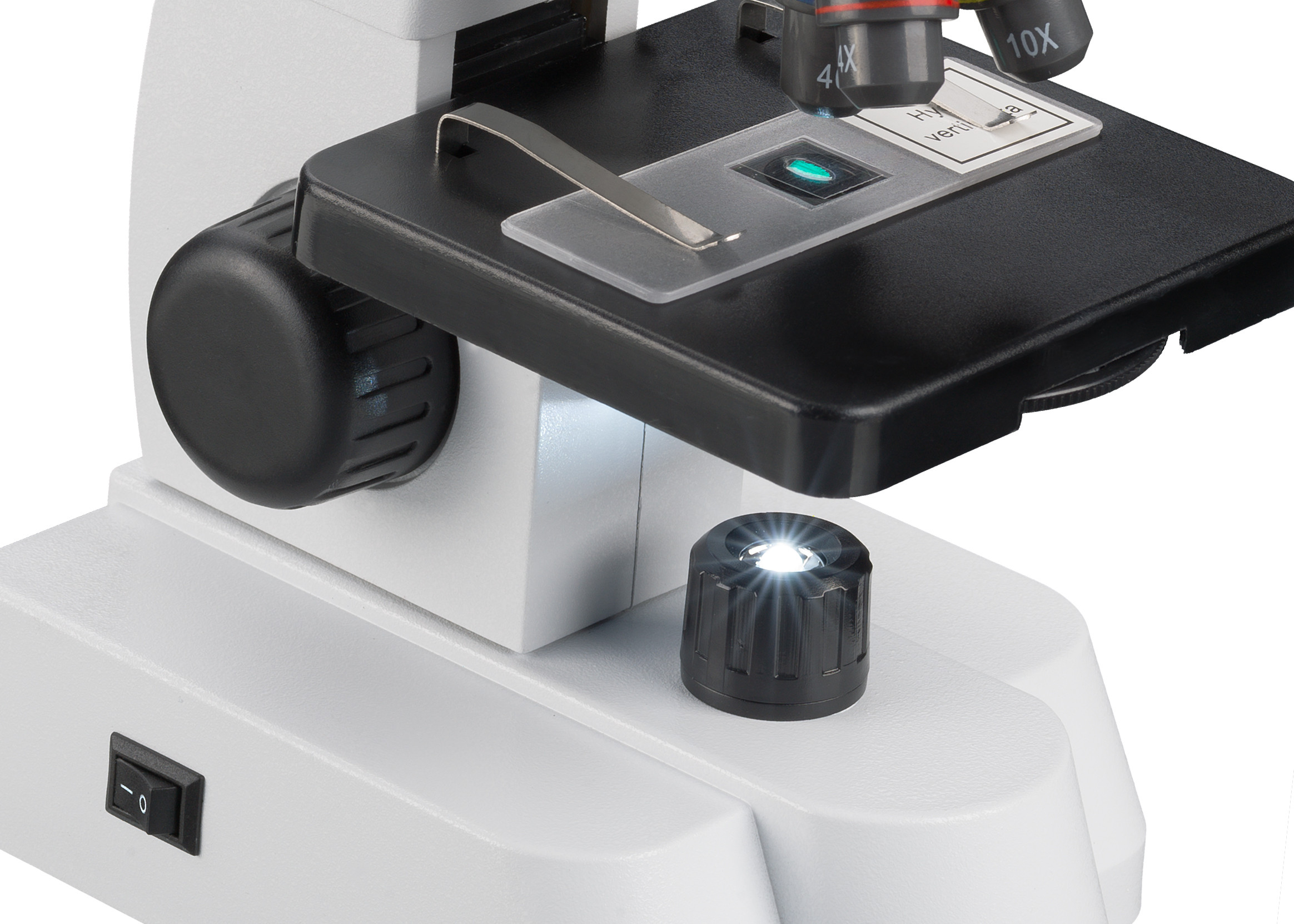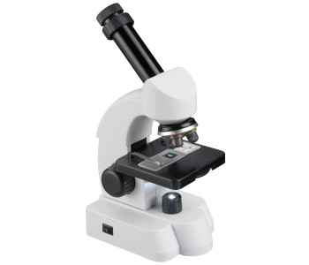 Мікроскоп Bresser Junior 40x-640x з набором для дослідів і адаптером для смартфона (8856000) є сучасним мікроскопом для дитячого розвитку. Мікроскоп укомплектований великою кількістю різноманітних аксесуарів, готових слайдів для перегляду, оснащений револьверною головкою з трьома об'єктивами, що дають у комплексі із зум-окуляром збільшення до 640х. Оскільки ця модель поставляється з широким набором аксесуарів - це дозволяє без зволікань приступити до досліджень у домашніх умовах без додаткових витрат часу та грошей. Збільшення мікроскопа формується трьома об'єктивами, зум-окуляром і сягає 640 крат. Рекомендується почати спостереження з об'єктива мінімальної кратності, встановивши зум-окуляр на мінімальну кратність. таким чином буде досягнуто кращої якості зображення. При необхідності - міняйте об'єктиви та положення зум-окуляра, домагаючись більшого збільшення. Підсвічування препарату здійснюється світлодіодним освітлювачем, що забезпечує достатню яскравість і більш правильне перенесення кольорів. Для живлення підсвічування надовго вистачає двох батарей типу АА, що не обмежує використання мікроскопа у польових умовах. Монокулярна насадка нахилена під кутом 45º, що відповідає більш природному положенню під час спостереження. Діафрагма з різними отворами дозволяє направити потрібну кількість світла на зразок. в залежності від використовуваного об'єктиву. Німецька компанія Bresser представляє широкий асортимент лабораторної оптики, призначеної для користувачів різного віку та навичок, починаючи від найменших і закінчуючи професійними лаборантами медичних та виробничих лабораторій.