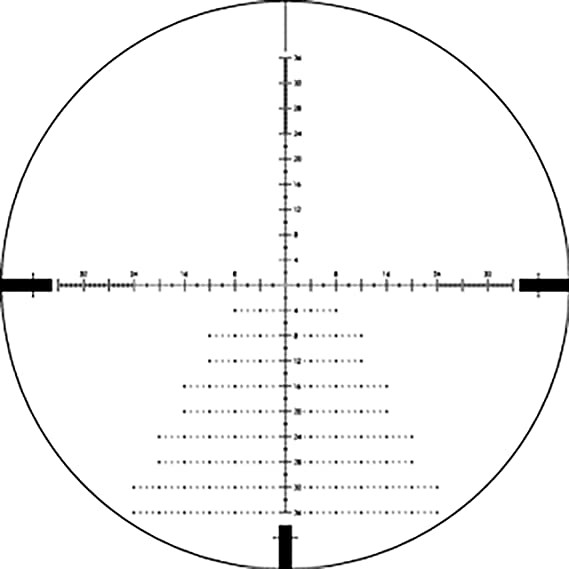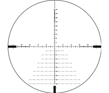 Прицільна марка в першої фокальної площині (FFP): Відстань у кутових величинах прицільної марки залишаються незмінними при зміні кратності збільшення зображення.