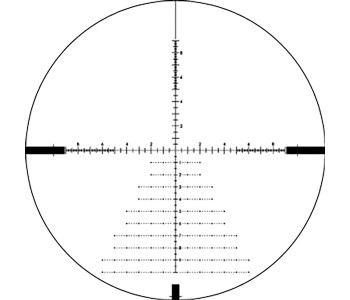Прицільна марка в першої фокальної площини: Відстань у кутових величинах прицільної марки залишаються незмінними при зміні кратності збільшення зображення.