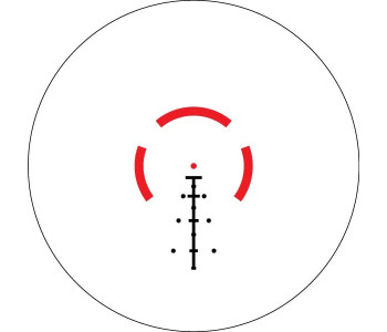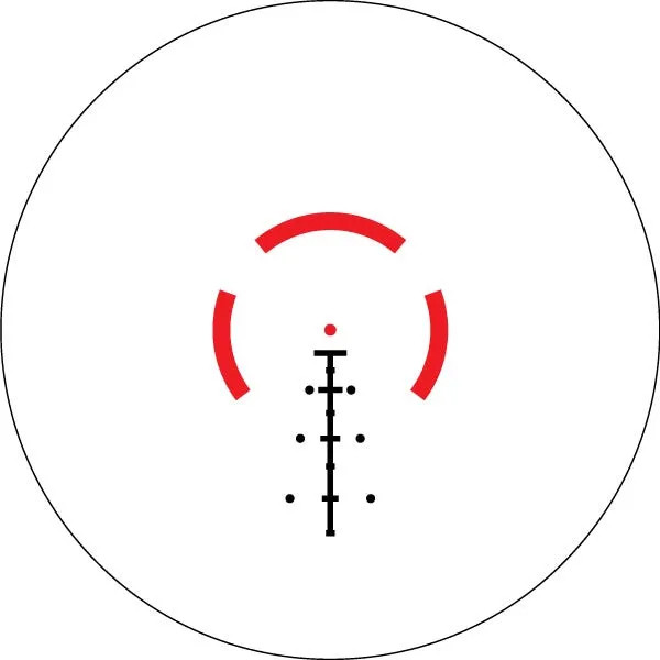 Даний тип сітки створений для максимально ефективного використання патрона 5.56 у вашій AR гвинтівці, забезпечуючи як швидке виявлення цілі, так і градуйовану шкалу ялинку для внесення поправок по горизонту на дистанції до 650 ярдів.
