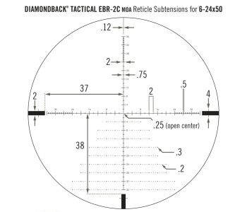 Оптичний приціл Vortex Diamonback Tactical 6-24x50 з прицільною маркою EBR-2C (в кутових хвилинах), розташованої у фокальній площині об'єктива.