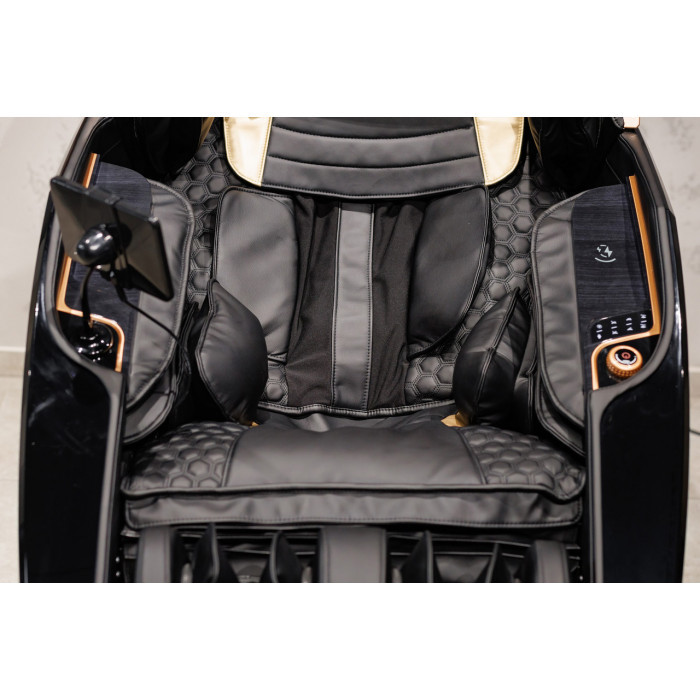 Над головою встановлено козирьок який допоможе захиститись від зовнішніх шумів та світла,для повного занурення і розслаблення під час масажу.