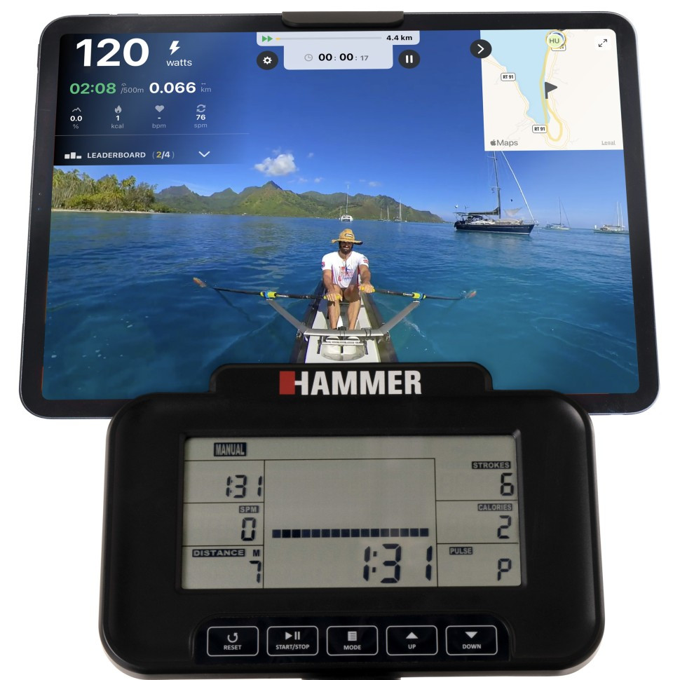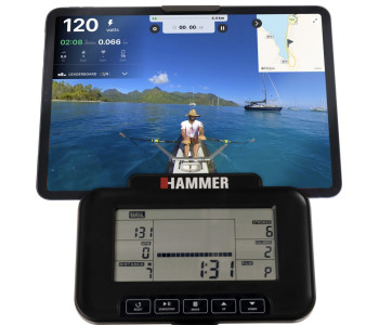 - Комп'ютер зі світлодіодним дисплеєм показує: гребки, гребки за хвилину, відстань, час і калорії