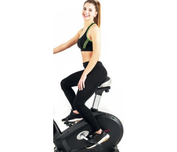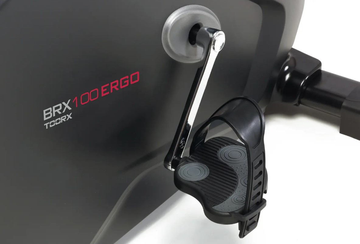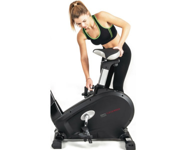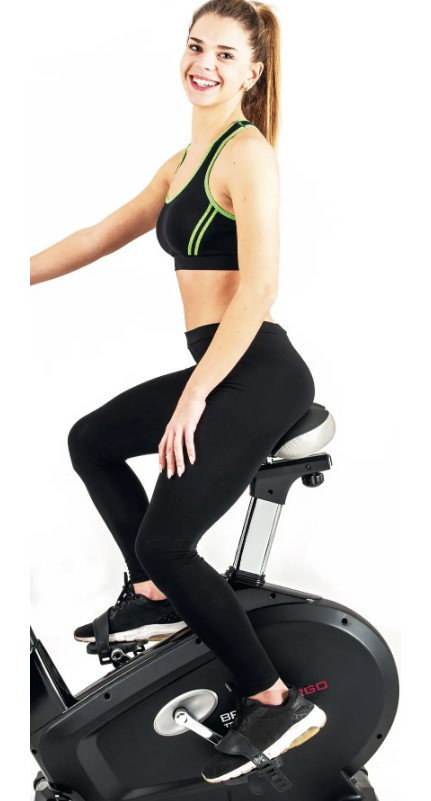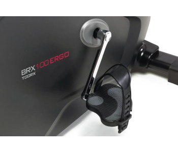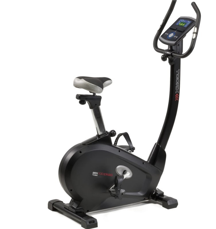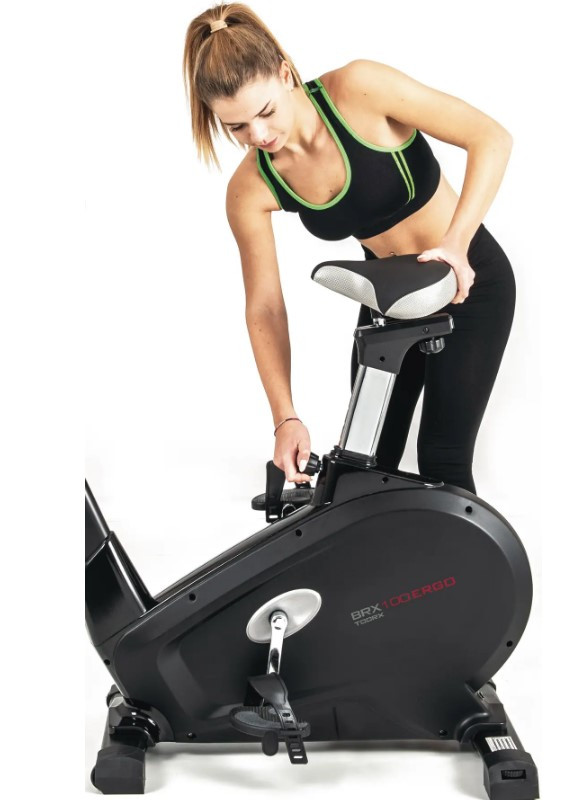 Велоергометр Toorx Upright Bike BRX 100 ERGO (BRX-100ERGO) із преміальної лінійки Chrono Line від італійського виробника Garlando S.p.A. призначений для комфортного кардіотренування в домашніх умовах. Тренажер має 32 рівня навантаження, що регулюються за допомогою сучасного комп'ютера. 14-кілограмовий маховик створює чудову плавність ходу, знижуючи навантаження на суглоби та мінімізуючи ризик отримання травми в процесі занять. Велоергометр розрахований на вагу до 150 кг і підійде для користувачів зростом до 2 м. Вбудований приймач для бездротового датчика вимірювання пульсу буде доречним під час тренування по одній із чотирьох пульсозалежних програм. Консоль тренажера має підставку для смартфона/планшета та підтримує Bluetooth для інтеграції з популярними програмами iConsole+ Training, Kinomap і Zwift, які перетворять монотонне тренування в захоплюючий процес. Сидіння велоергометра регулюється по висоті та в горизонтальній площині для індивідуального налаштування, а транспортувальні ролики в передній частині тренажера дозволяють переміщати його по кімнаті.