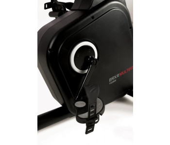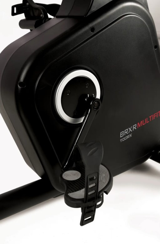 Горизонтальний велотренажер реабілітаційний Toorx Recumbent Bike BRXR Multifit (BRX-RMULTIFIT) із преміальної лінійки Chrono Line від італійського виробника Garlando S.p.A. призначений для комфортного кардіотренування в домашніх умовах. Дана модель не має собі рівних на ринку, оскільки оснащена рухомими важелями, синхронізованими з педалями, а також зручними кнопками для регулювання рівнями навантаження, що гарантують можливість тренування верхніх кінцівок разом із нижніми. Сидіння велотренажера регулюється в горизонтальній площині, а також повертається на 90 градусів праворуч або ліворуч, що забезпечує легкий доступ для людей із обмеженою рухливістю. 14-кілограмовий маховик створює чудову плавність ходу, знижуючи навантаження на суглоби та мінімізуючи ризик отримання травми в процесі занять. Велотренажер розрахований на вагу користувача до 120 кг і має зручну спинку з дихаючої сітки для більшого комфорту. Вбудований приймач для бездротового датчика вимірювання пульсу буде доречним під час тренування по одній із чотирьох пульсозалежних програм. Консоль тренажера має підставку для смартфона/планшета та підтримує Bluetooth для інтеграції з популярними програмами Kinomap і Zwift, які перетворять монотонне тренування в захоплюючий процес. Транспортувальні ролики в передній частині тренажера дозволяють переміщати його по кімнаті.