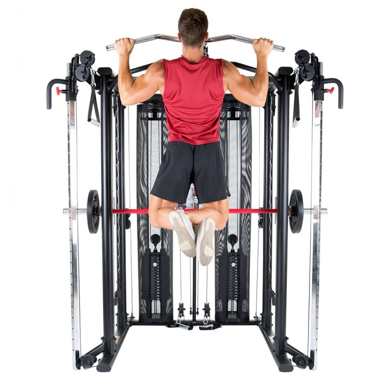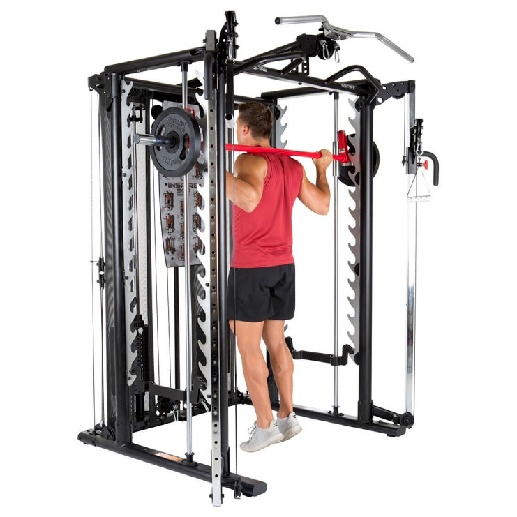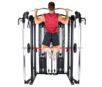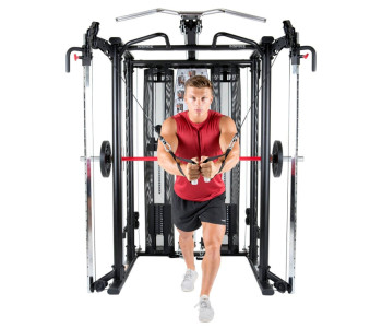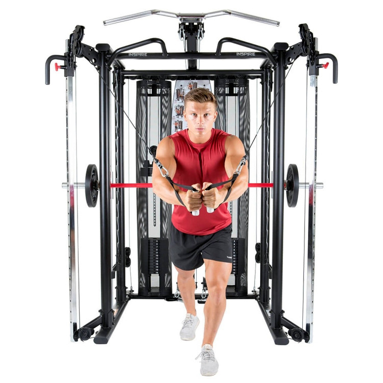 Якщо ви прихильник високопрофесійних силових тренувань, тоді функціональний тренажер Inspire SCS – для вас. Цей унікальний тренажер поєднав у собі дві системи: вантажоблокову та на вільних вагах. Просто вражає те, скількома функціями наділено цей винахід американських інженерів. Це і блок для тяги, і машина Сміта, і тренажер для підтягувань, і тренажер для жиму, навіть кросовер. Таке розмаїття обумовлено наявністю вбудованого грифа та турніка в силовій рамі.