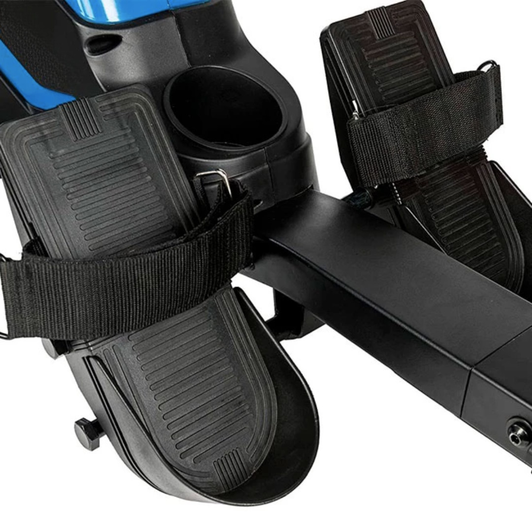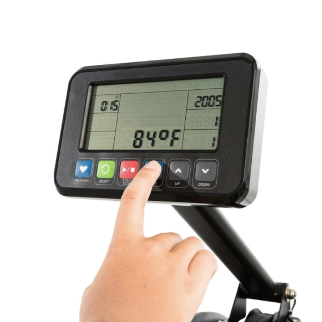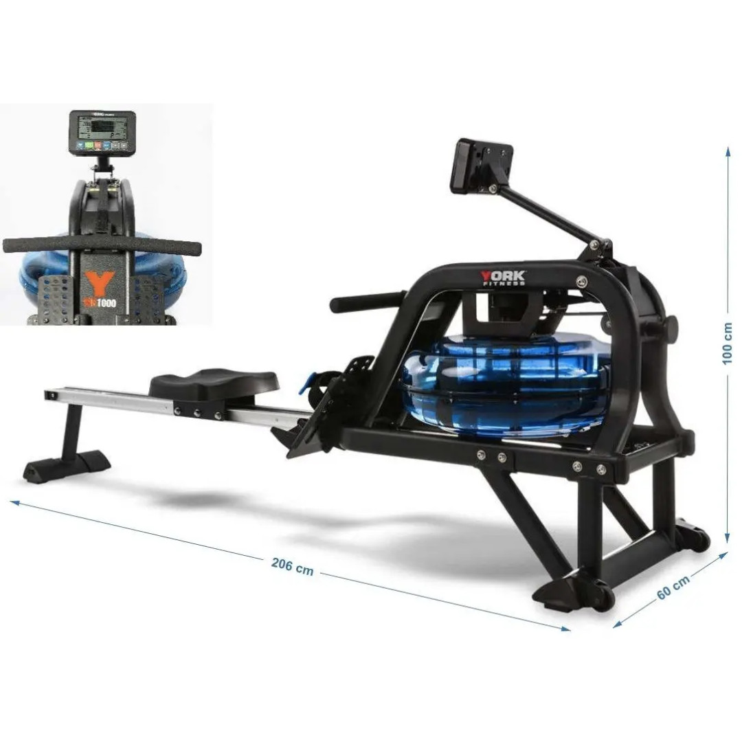У світі, де ритм життя стає все швидшим, зберегти своє здоров'я та добробут, не виходячи з дому, стало легше ніж будь-коли раніше. Більше не потрібно пристосовувати свій графік під графік роботи спортзалу - ваше тіло та здоров'я - у ваших власних руках, прямо вдома. Удосконалений акватренажер тренажер York Fitness WR1000 - нове покоління тренажерів для веслування з водним опором. Забезпечує неперевершене тренування всього тіла для користувачів будь-якого рівня фізичної підготовки. Система водного веслування забезпечує плавне та стабільне веслування з кожним гребком, надаючи можливість повністю контролювати опір. Змінний об'єм води регулює опір залежно від швидкості (швидший рух створює більший опір). Тренажер має 5 програм, автоматичний вибір тренувальних зон та імітацію перегонів, а також 6 рівнів ручного регулювання навантаження. Це дозволяє ідеально налаштувати інтенсивність тренування відповідно до ваших навичок, а також стежити за власним прогресом. Він також має плавну алюмінієву систему напрямних, зручну конструкцію та гнучкі педалі з легким регулюванням для неперевершених вправ. Зручне сидіння та ергономічний рельєф поверхні не ковзає і забезпечує максимальний комфорт навіть під час самого інтенсивного тренування. При бажанні ви можете в будь-який момент транспортувати гребний тренажер York Fitness WR1000 будь куди за допомогою системи транспортувальних роликів.