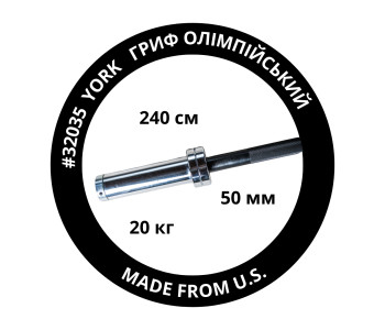 Головна > Залізо > Грифи > Гриф олімпійський прямий York Fitness 240см (50мм) чорний Y-32035