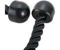 Прагнете постійного прогресу в тренуваннях? Ключ до нього - різноманітність вправ. Високоякісний канат Hammer для тренувань трицепса від відомого бренду York Fitness, вирізняється рядом переваг та можливостей для максимально ефективного тренування. Використовується в роботі на блочних тренажерах для тренування м'язів плечового поясу, рук та спини. Основою тяги-канату York Fitness є міцний плетений трос із високоякісного поліпропіленового волокна. З одного боку до нього прикріплений міцний металевий підвіс із вушком під карабін, що дозволяє використовувати канат практично на будь-якому блочному тренажері. Дозволяє точно спрямовувати зусилля на роботу трицепса, забезпечуючи ізольоване та ефективне тренування.