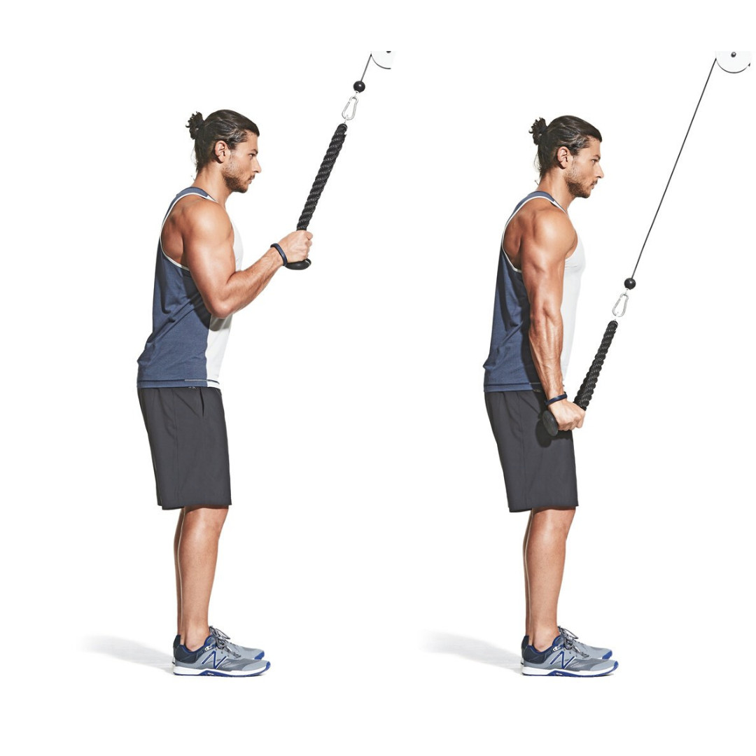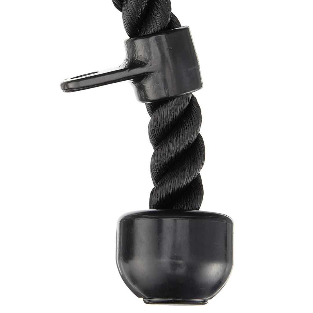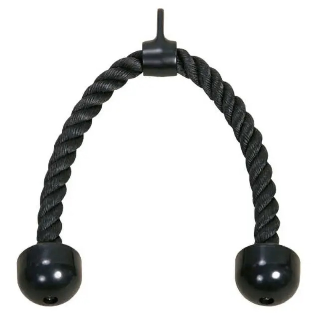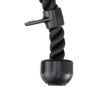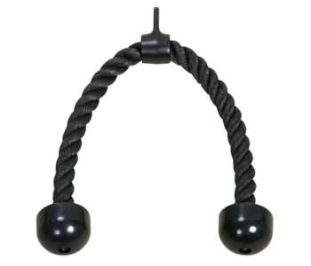 Хочете мати скульптурну мускулатуру і сильні руки? Досягти цієї мети вам допоможе канат для тяги на трицепс з подвійним хватом від відомого бренду York Fitness. Канат призначений для ізолюючих вправ, що розвивають м'язи рук (біцепс, трицепс), плечей, має другорядне вплив на передпліччя - підсилює хват. Дозволяє виконувати безліч вправ таких частин тіла, як плечі, груди, спина, трицепси і прес. Така особливість допомагає підвищити результативність тренувань і початківцям, і спортсменам змагального рівня. Канат виготовлено з щільно сплетених міцних нейлонових волокон, завдяки чому максимальне навантаження на ручку становить 200 кг. На кінцях мотузки є антиковзкі гумові упори, що забезпечують надійний і хват під час виконання вправ. Наконечник діаметром 2,75см кріпиться на кінці канату.