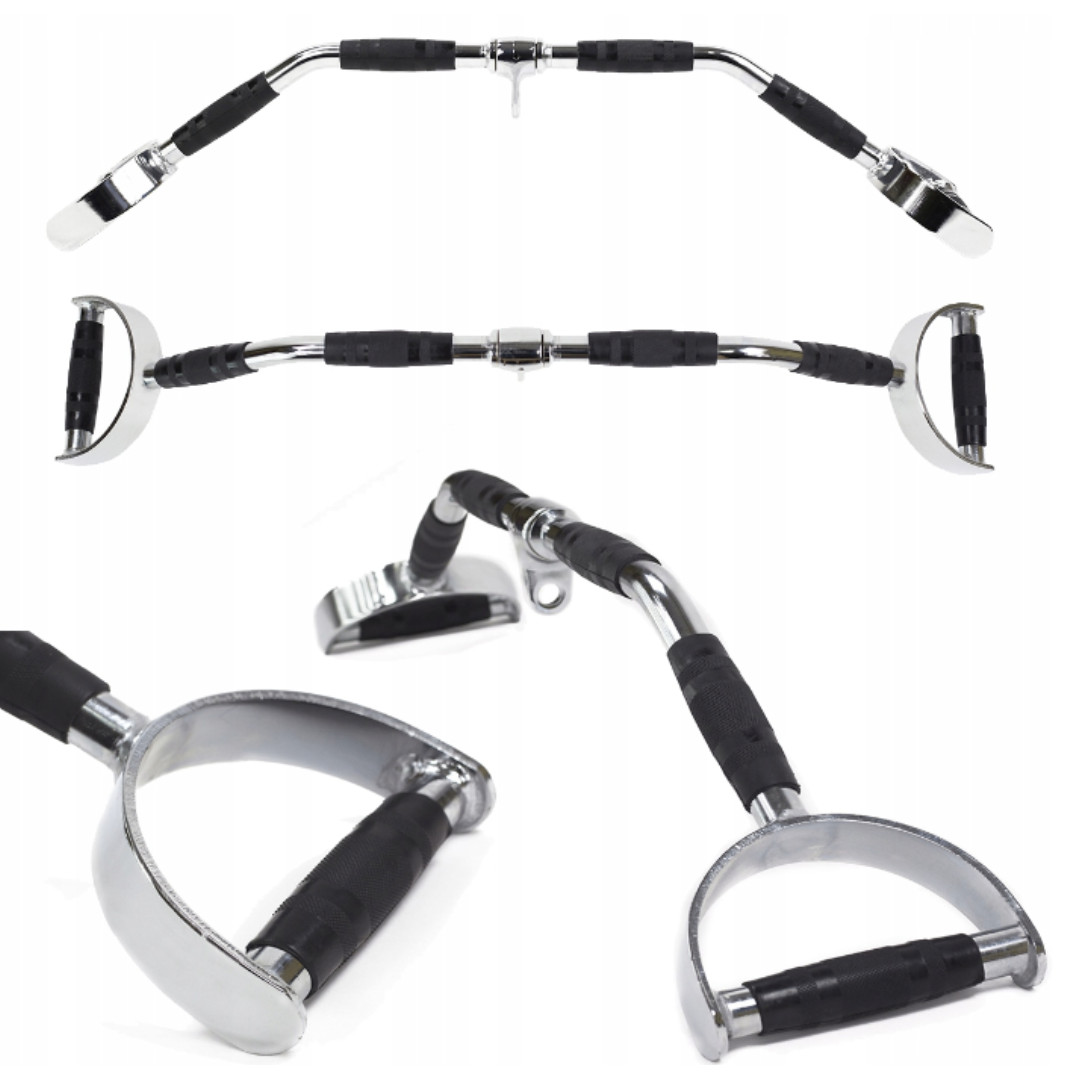 Якщо ви хочете зміцнити м'язи спини безпечно і ефективно, тоді вам у цьому допоможе вигнута ручка для м'язів спини з паралельним хватом довжиною 86см від відомого бренду York. Ручка для верхньої тяги ідеально підходить для вправ на турніку, тренажерах з блоками верхньої тяги та інших фітнес-обладнаннях. Паралельні рукоятки дозволяють виконувати звичні вправи нейтральним хватом, завдяки чому вони по-іншому впливають на м'язи та стимулюють їх розвиток. Варіюючи хват від широкого нейтрального до вузького прямого або зворотного (за гриф), можна зміщувати навантаження на окремі м'язові пучки, тренуючи спину в цілому. Виготовлена з високоякісної сталі, захищеної від корозії хромуванням, що забезпечує довговічність та робить її надійним інвестиційним варіантом для вашого тренування. Гумові рукоятки забезпечують надійний та комфортний хват, навіть під час інтенсивного тренування. Вони також допомагають уникнути ковзання рук під час вправ. Підвіс, що вільно обертається, забезпечує плавний, безперервний рух під час виконання вправ.
