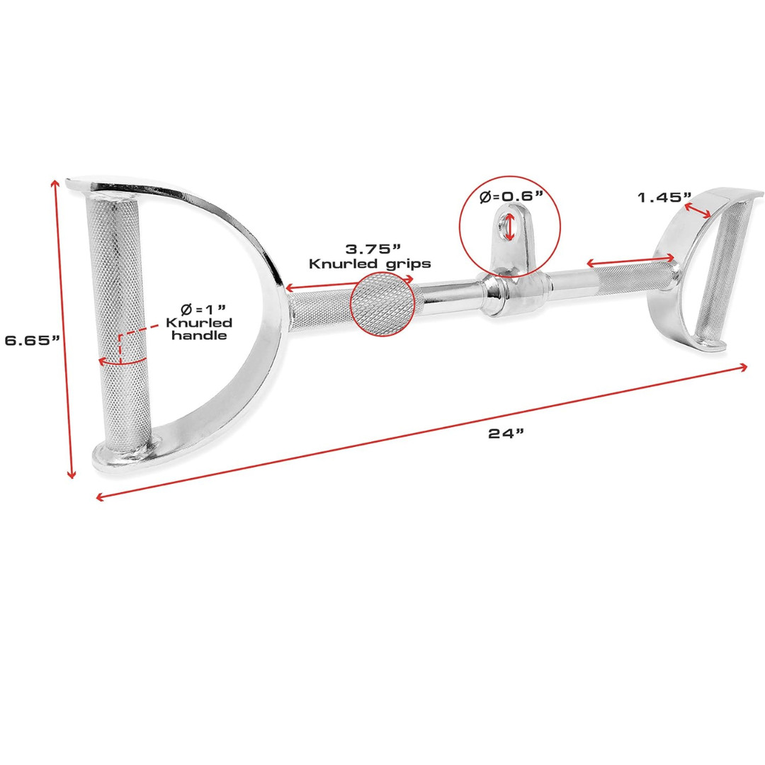 Хочете мати сильні руки та розвинені м'язи спини? Добитися цього вам допоможе пряма ручка для верхньої тяги York Fitness 60см з паралельним хватом. Ручка для верхньої тяги представляє собою високоякісний тренажер, спроектований для ефективного розвитку верхньої частини тіла. Тенажер призначено для зміцнення м'язів спини, рук та плечей, роблячи її важливим елементом вашої тренажерної програми. Паралельний хват розширює можливості тренувань, дозволяючи виконувати різноманітні вправи для різних м'язових груп. Виготовлена ручка для верхньої тяги із високоякісної сталі, захищеної від корозії хромуванням, що забезпечує довговічність тренажера. Насічки на рукоятках забезпечують надійний та комфортний хват, запобігаючи ковзанню рук та комфорт під час тренувань. Підвіс, що вільно обертається, забезпечує плавний, безперервний рух під час виконання вправ. Легка вага ручки дозволяє з легкістю транспортувати та зберігати тренажер за необхідності.