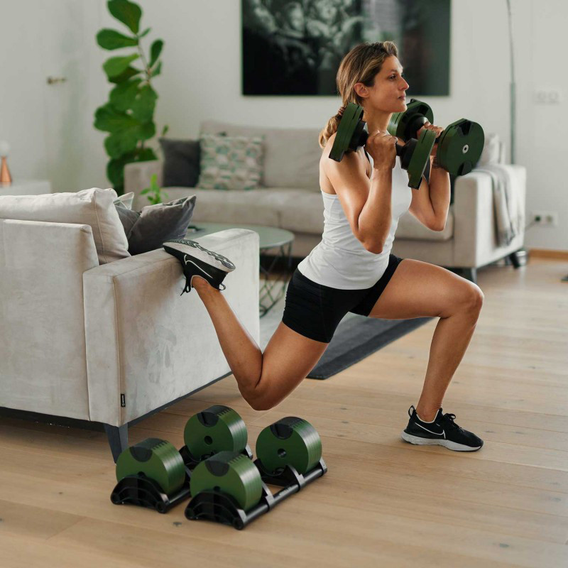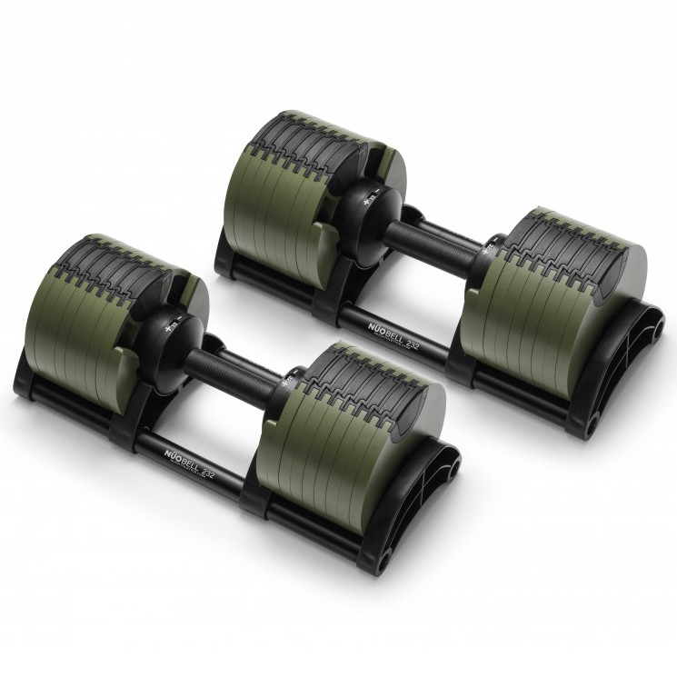 Набірні гантелі NUO Nuobell Green 2-32 кг пари мають оригінальну конструкцію, яка дозволяє регулювати вагу гантелі простим поворотом ручки. Як тільки ви встановите правильну вагу, підніміть гантель та почніть тренуватися. Дозволяють регулювати вагу від 2 до 32 кг з кроком всього 2 кг – 2-4-6-8-10-12-14-16-18-20-22-24-26-28-30-32 кг.