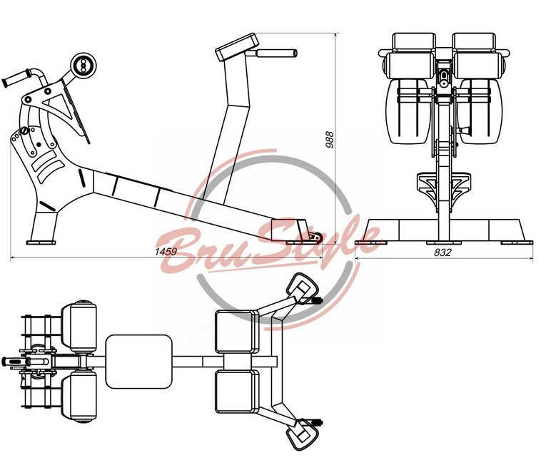 Вигнуте назовні кермо з гумовим покриттям з формованими ручками для пальців служить одночасно опорою і орієнтиром для правильного та безпечного положення тіла на початку тренування.