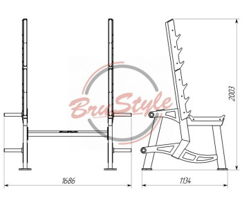 Кут нахилу рами – вертикальний кут рами 10 градусів забезпечує відкритий доступ до олімпійської стійки для присідань і дозволяє легко входити та виходити.